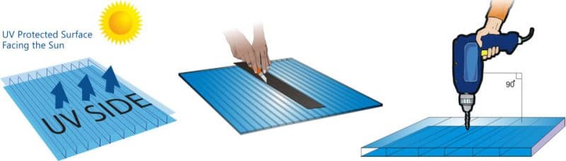 Tấm polycarbonate thường có 1 mặt phủ UV để chống tia cực tím. Nếu lắp ngược mặt này vào trong, tuổi thọ tấm nhựa sẽ giảm nhanh do bị giòn, ố vàng.