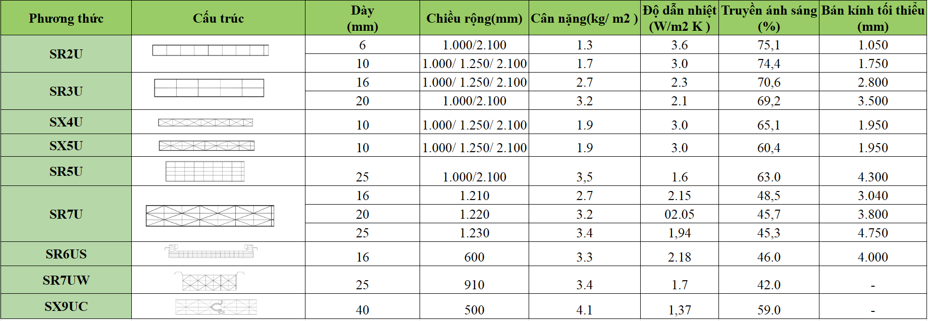 Technical Characteristics of SkyLite Multiwall Polycarbonate Sheet